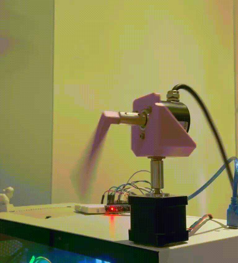 The hardware design for this project was fairly straightforward. The robot was essentially just a rotary encoder cleverly connected to a motor using rigid couplers and 3D printed parts. However, since this was a complex control problem, it was important that the robot could achieve precise movements and report accurate positioning data.